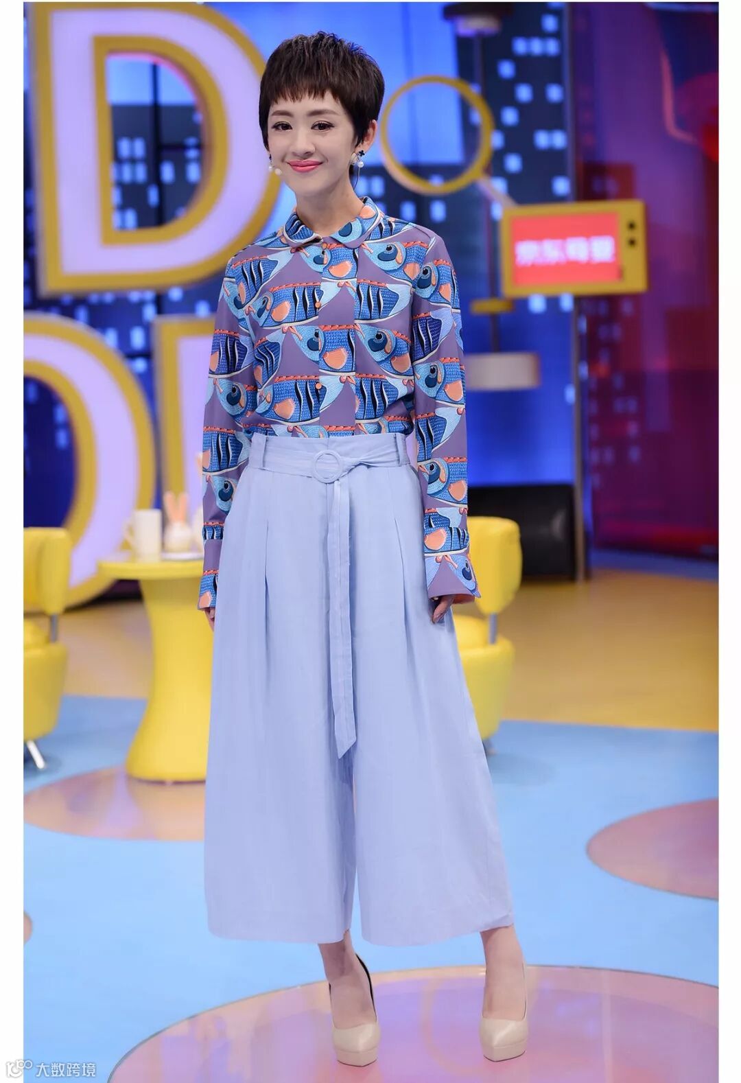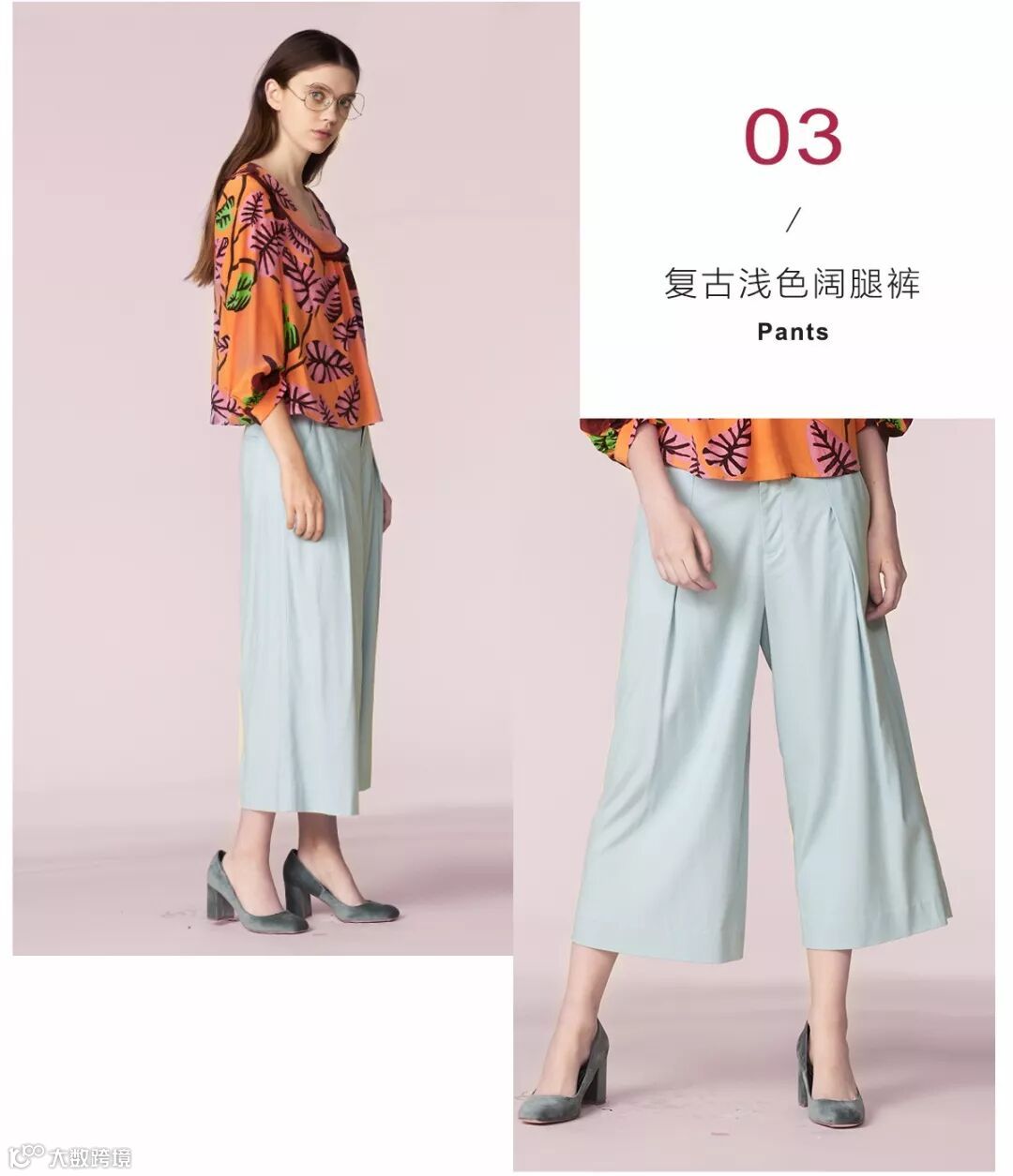 或是流动利马河印花上衣与浅蓝色阔腿裤