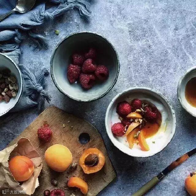 对于美食摄影来说,道具点缀十分重要,餐巾、桌布、调料瓶,还有桌板、托盘、植物等等,甚至是你的电脑、杂志,以及你的手和美腿,都可以让视觉变得更加丰富,使生活气息显得更加浓厚。