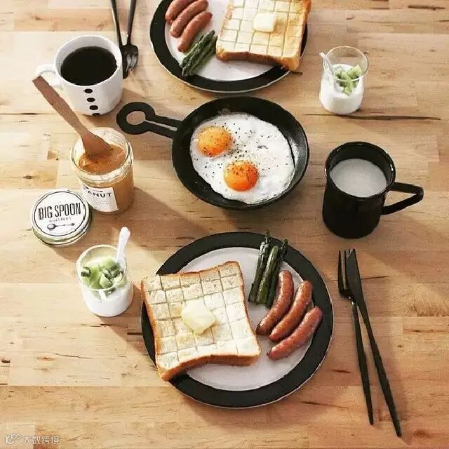 没有人会喜欢寡淡无聊的照片,尤其是在拍摄美食的时候,如果背景、食物、道具颜色都差不多的话,自然没什么亮眼之处可看,所以建议大家适当为画面增加一点色彩,比方说,如果你想要拍摄牛排,那么餐盘中最好还要有份对比色的食材做衬托,比如新鲜翠绿的西兰花等等,一点点色彩上的反差就会让整个画面鲜活起来,变得更加饱满。