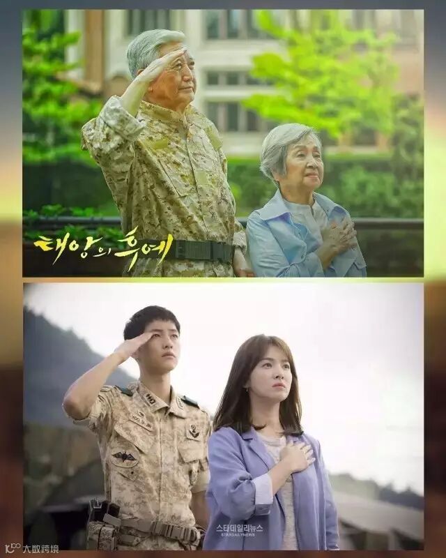爷爷奶奶重现当下热门电视剧《太阳的后裔》经典剧照
