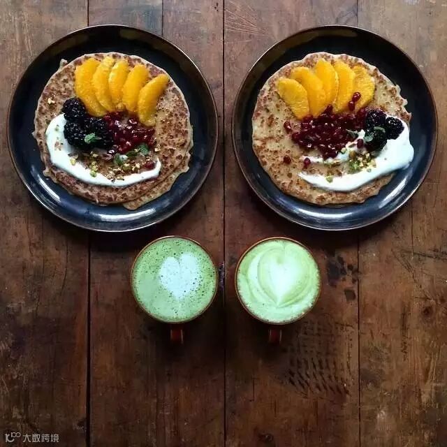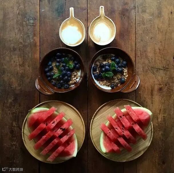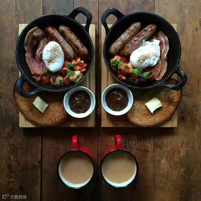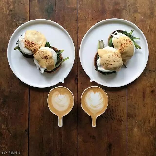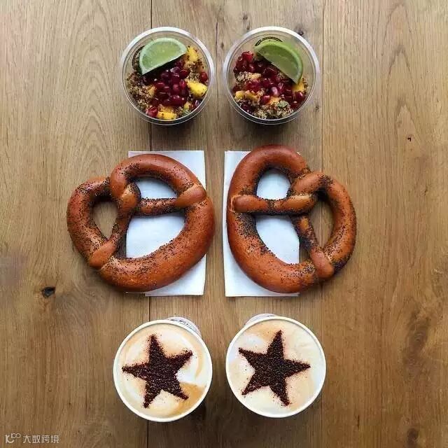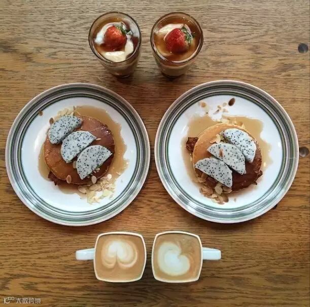 那一天,他准备了西式煎蛋饼,配牛油果、意大利香肠及果汁,结果随手摆放完之后却发现两份早餐竟然是完全对称的,所以便拍了照片分享到网络上,朋友的好评让他们萌生了继续分享下去的念头。