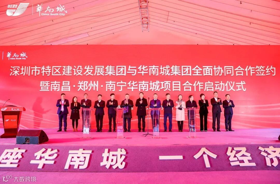 11月30日,深圳市特区建设发展集团有限公司与华南城集团全面协同合作签约暨南昌、郑州、南宁华南城项目合作启动仪式,在南昌华南城D09地块华公馆圆满举行。南昌市委市政府、红谷滩区委区政府领导;特区建发集团领导;华南城控股集团领导;中建八局、中建五局公司领导;江西省银行、金融机构领导出席仪式。参加仪式的还有华南城南昌公司代表;华南城商协会、大商户及业主代表、施工单位代表及媒体代表等。