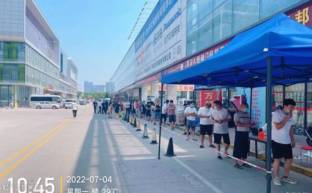 随着西安本轮疫情的出现,西安华南城高度重视,迅速行动,积极配合港务区政府,已经多日连续开启全员核酸检测,切实抓好园区疫情防控工作,确保园区商户和华南城员工的安全。截止目前共检测3万余人次,采样工作严格按照标准流程进行,做到“应检尽检”,为园区的防疫安全添加了一道“防火墙”。