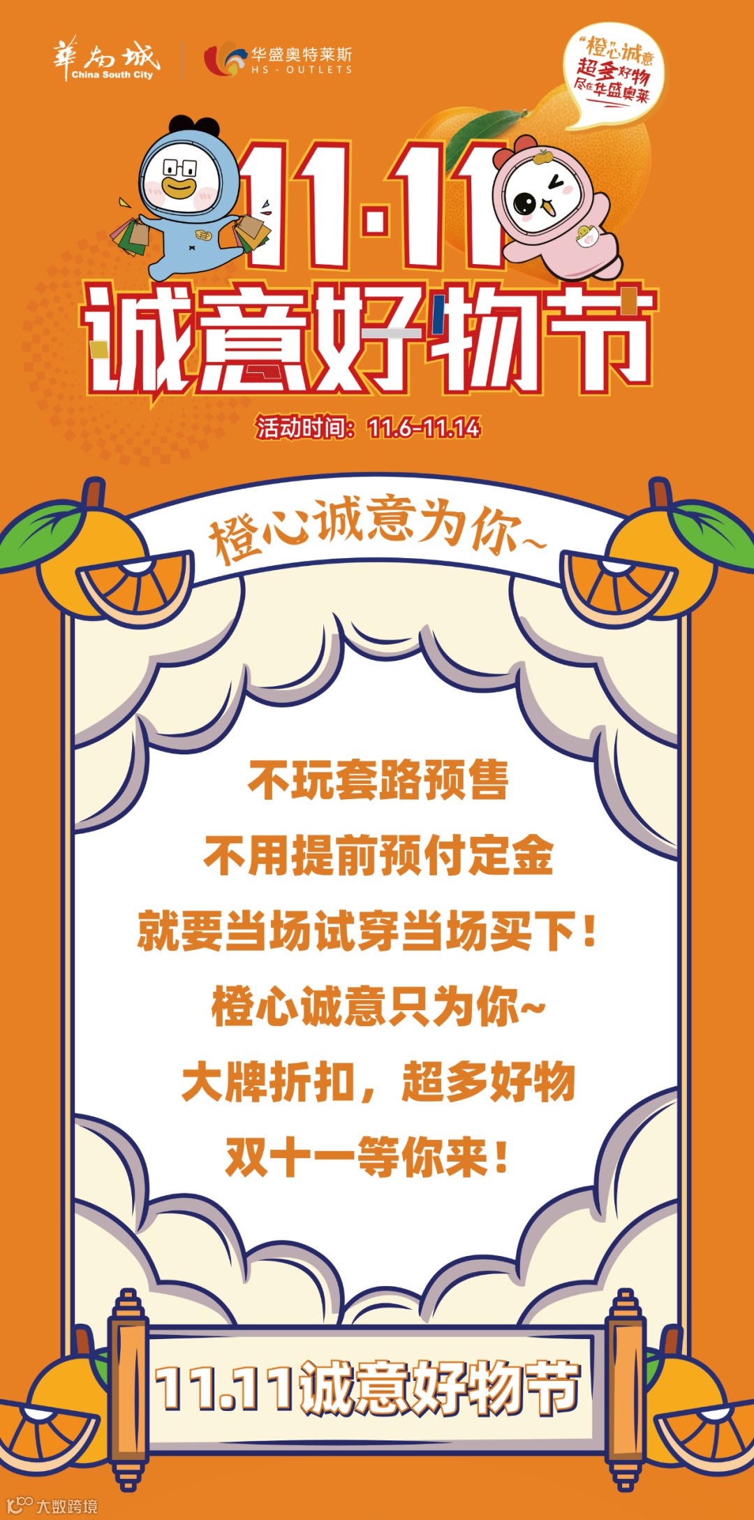 双十一血拼攻略 | 华盛奥莱“橙”意为您送上无套路超抵值福利活动!