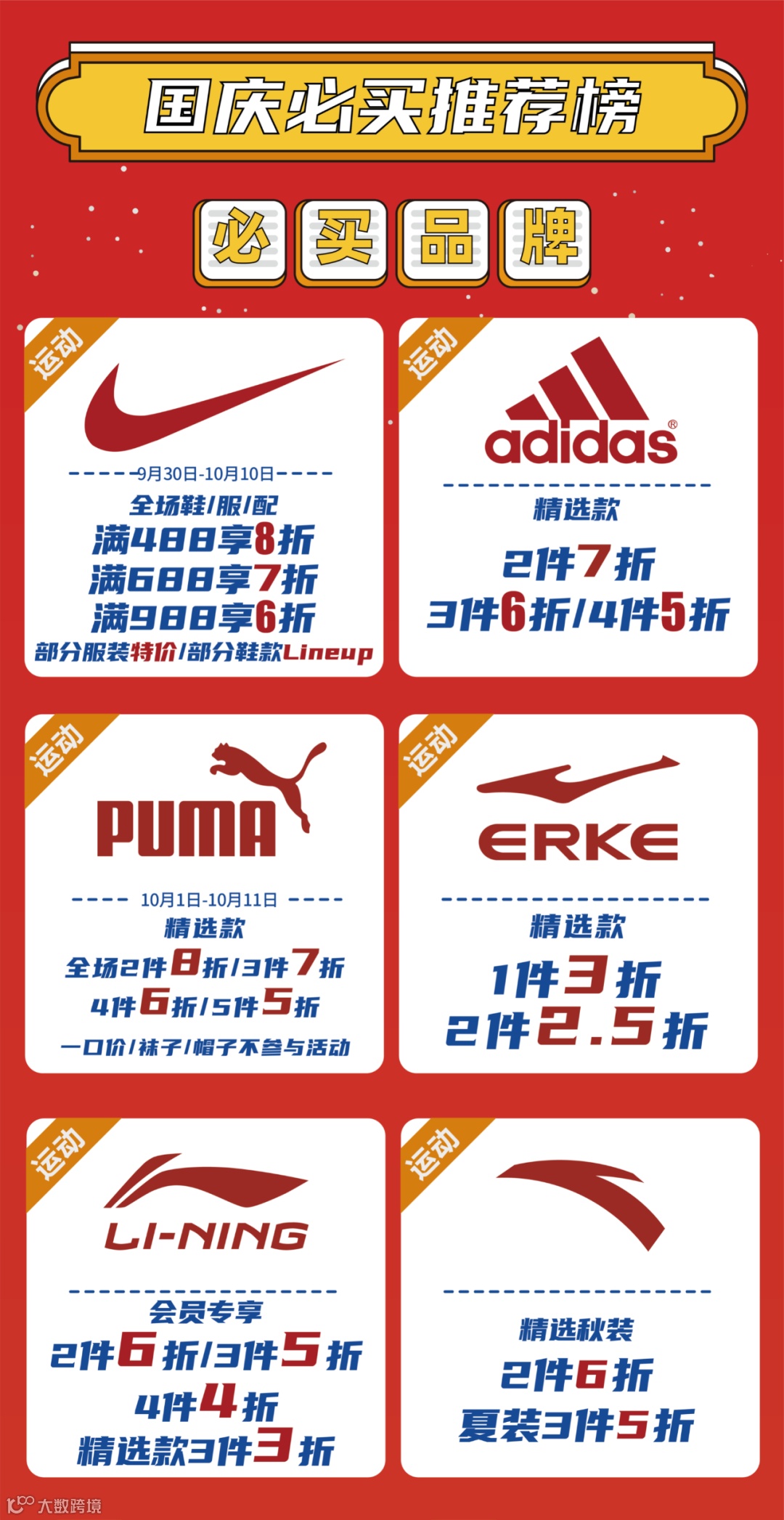 华盛奥特莱斯 | 李宁假期福利来袭!会员尊享超值折扣,精选款3件3折!