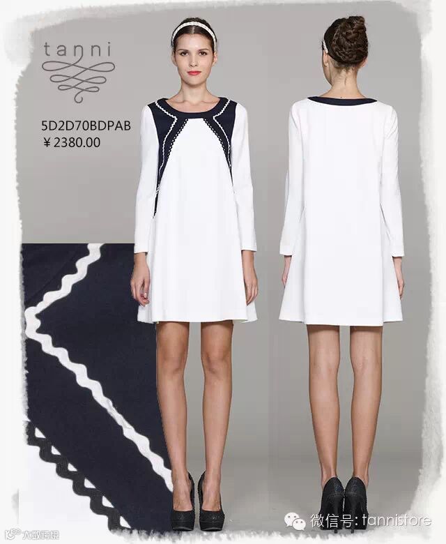 复古经典款黑白拼接连衣裙。肩部撞色装饰,一如神隐女孩儿的翅膀,自由灵动,纯白的裙摆舞动着少女般的甜美纯真。