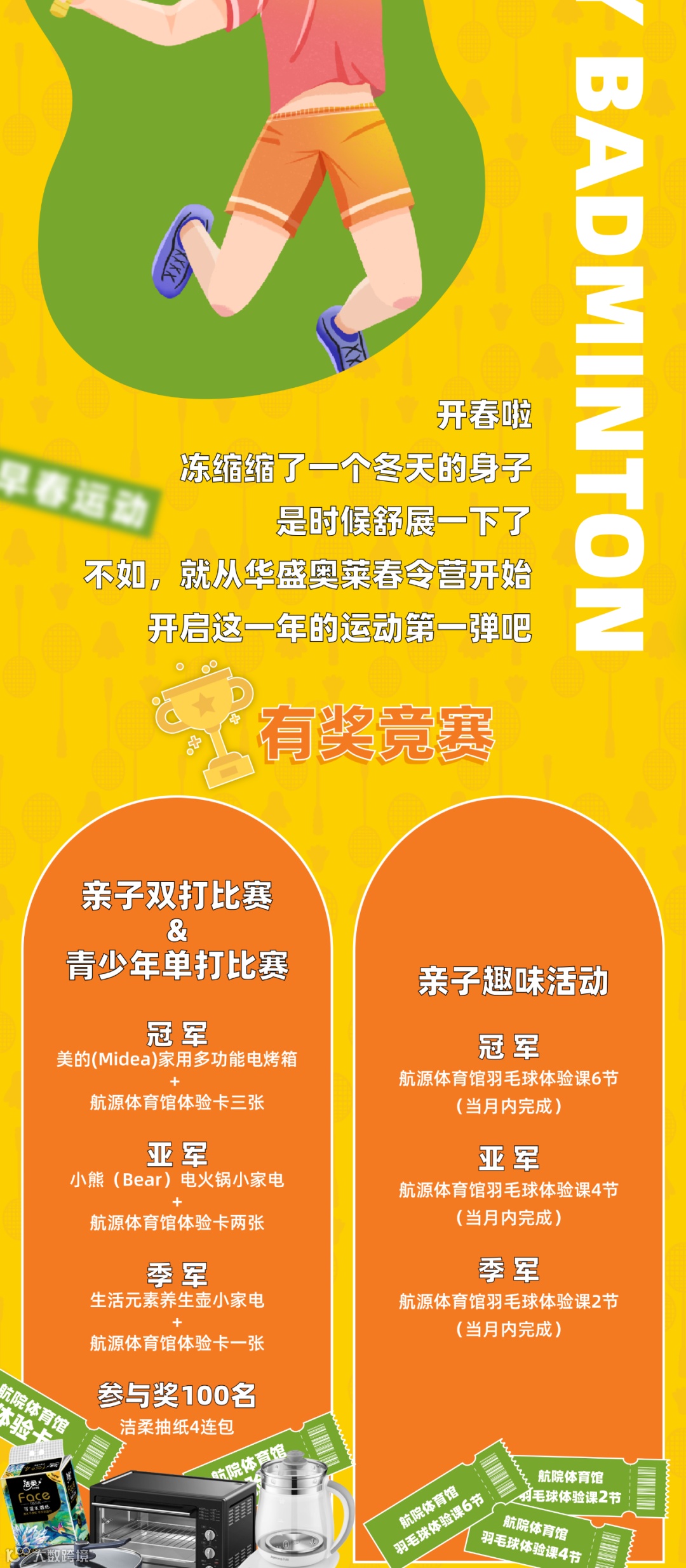 导读:谁“羽”争锋,春令营羽毛球互动赛,招募啦!