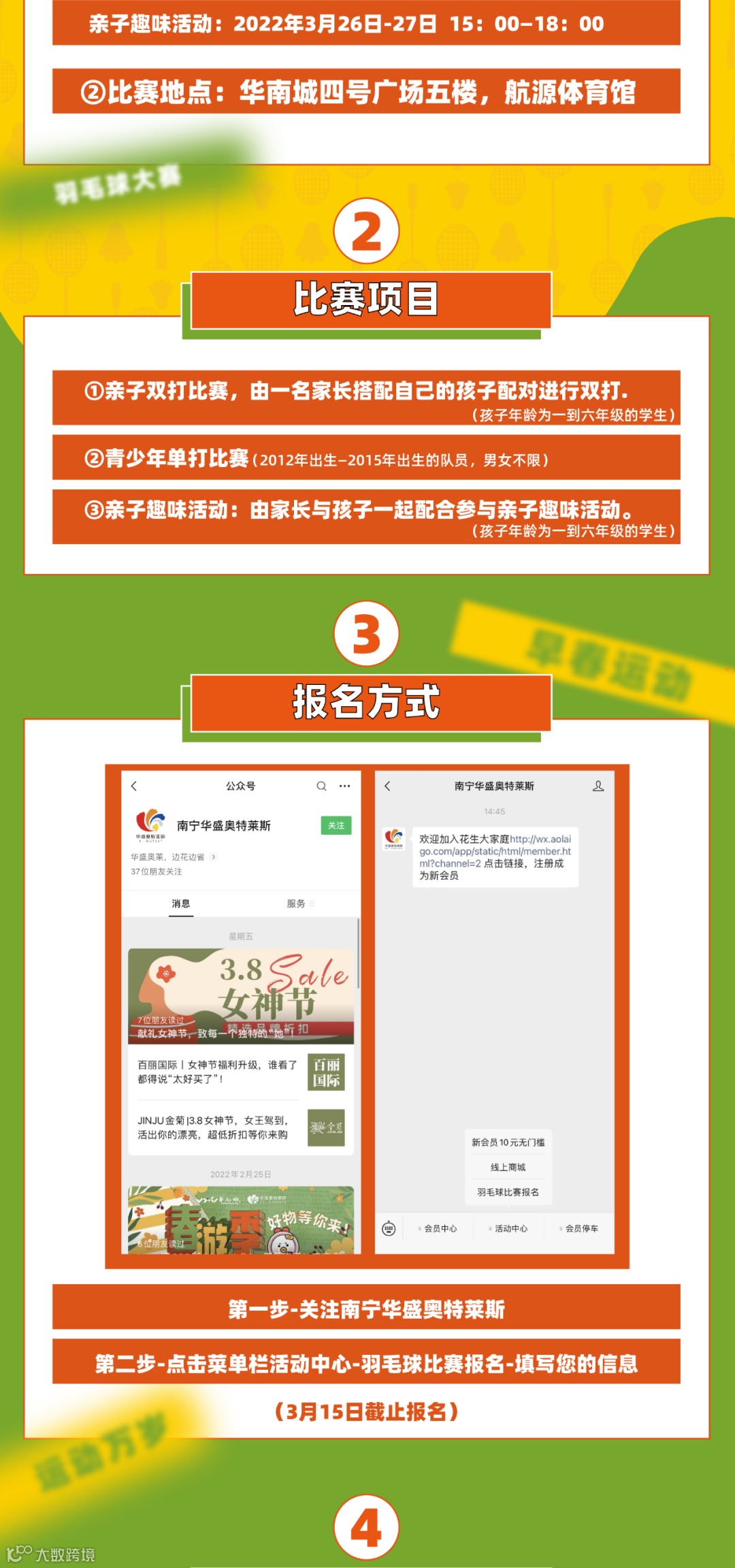 华盛奥特莱斯 | 谁“羽”争锋,春令营羽毛球互动赛,招募啦!