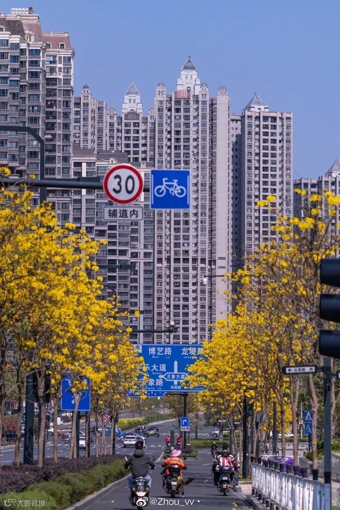 青秀山风铃谷的黄花风铃木,摄影师@Zhou_vv
