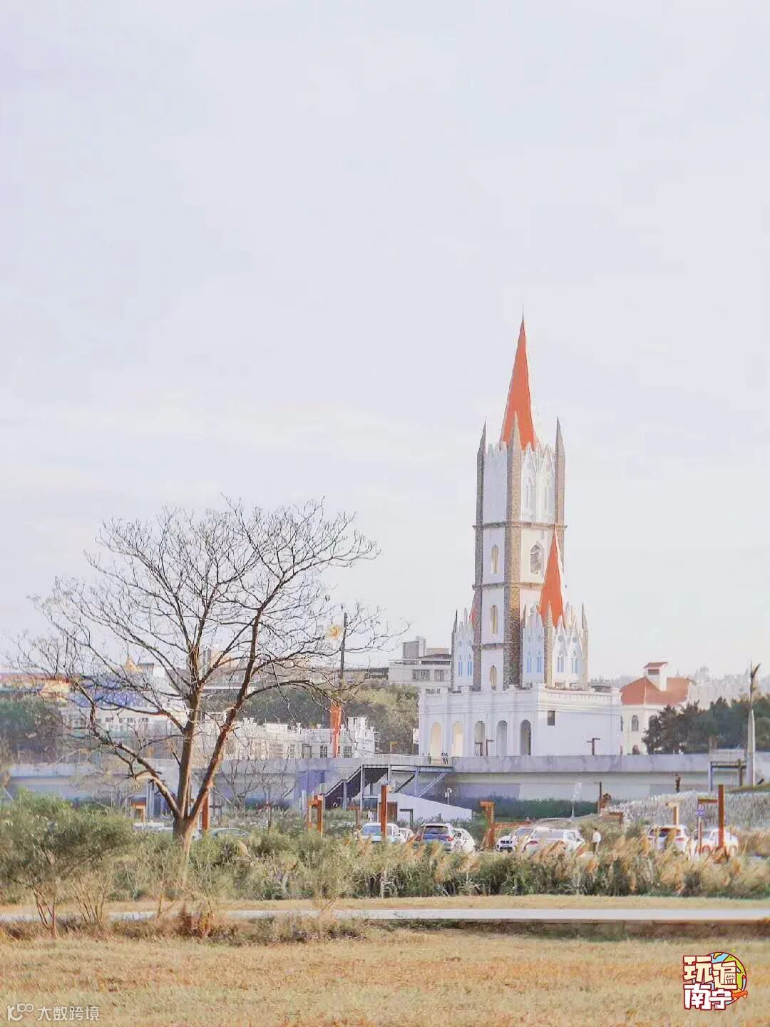 邕江边的浪漫欧式教堂,还有白蓝色调的蓝顶建筑,还有塑胶大道,随便一拍就是大片!