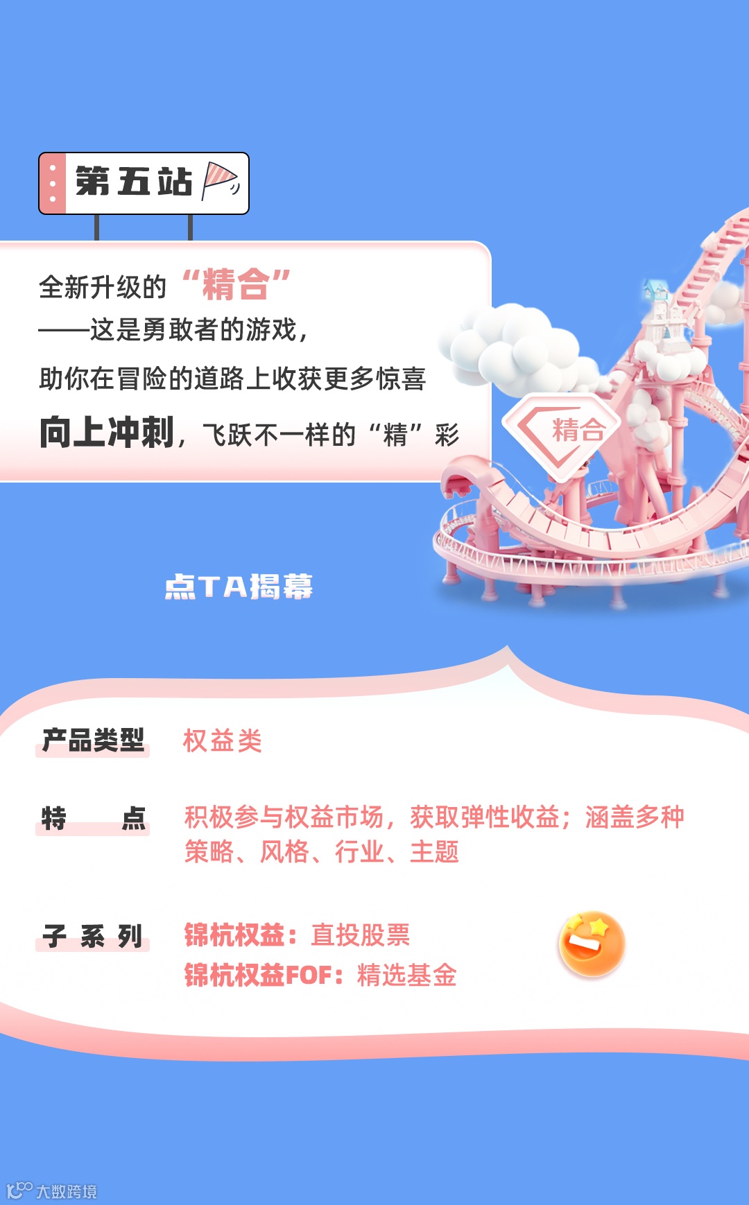 具体到场景设计,「六合」各产品特性恰好与摩天轮、过山车等设施相结合,用户通过线上互动,了解并找到适合自己的杭银理财六合产品。