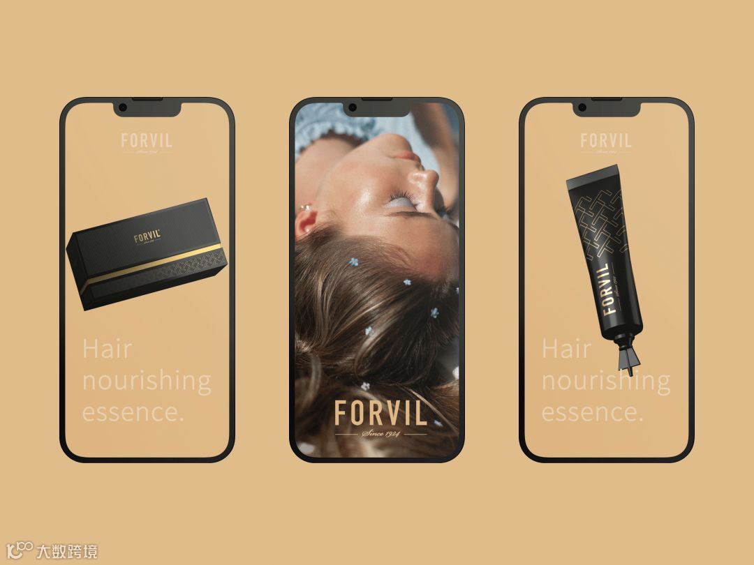 因此,热浪选择了低调奢华的黑金配色,结合国际品牌的摩登感和历史积淀,首字母【F】的有序平铺作为辅助元素、不仅加深品牌FORVIL的感知、也有中文语境中“发”的含义,同时也像亟待养护的发丝,等待一场非凡的体验。
