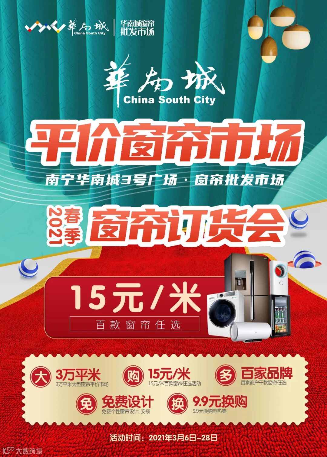2、华南城窗帘订货钜惠来袭!5000元现金大奖、百份家电豪礼抢先看!