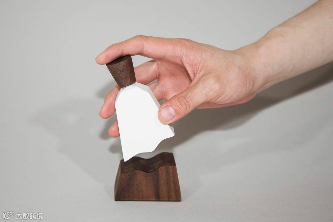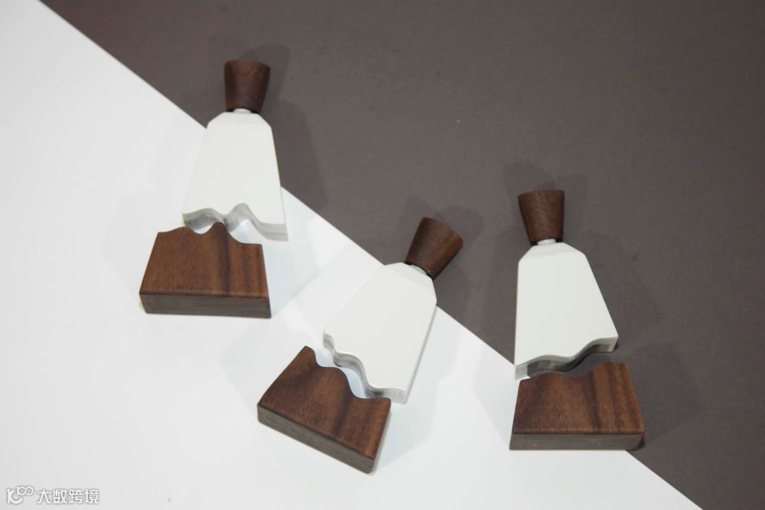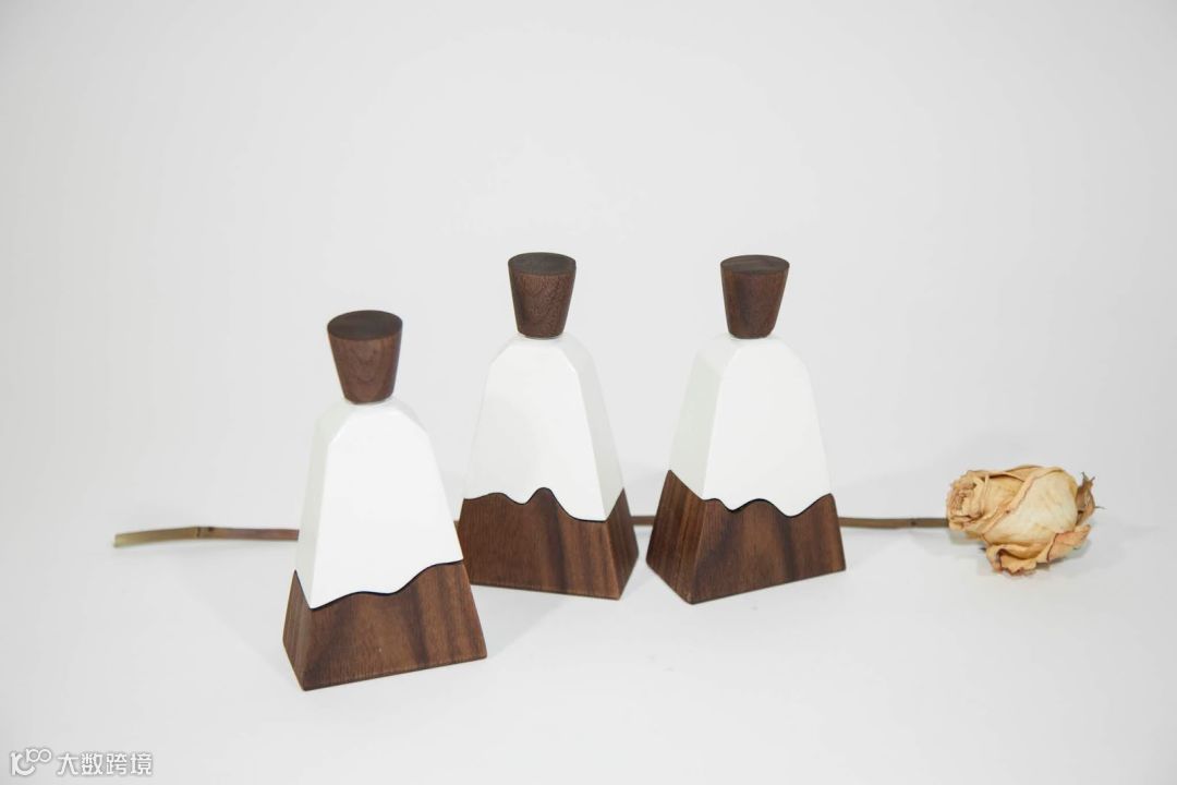 每个香水瓶都有一个木制底座,使用完放回来的时候,需要仔细把它们与底座结合,这一行为带有一种仪式感。香水瓶的曲线是从太阳运动中汲取的灵感,三种曲线对应三种日常情景。