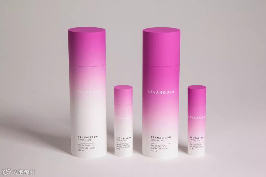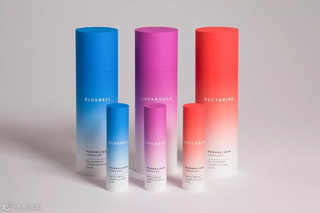 使用颜色渐变,在视觉上感觉像气味和喷雾,代表不同浓度的香水(淡香水和淡香水)。使用极简主义排版,只在包装上放置必要的产品信息。同时在香水测试仪条纹上也运用了同样的视觉语言。