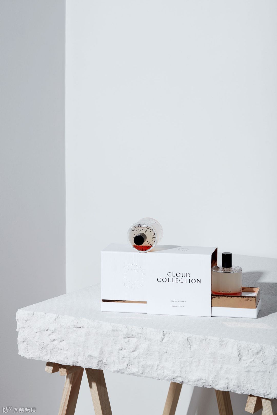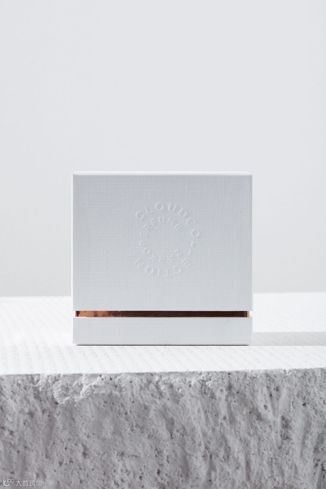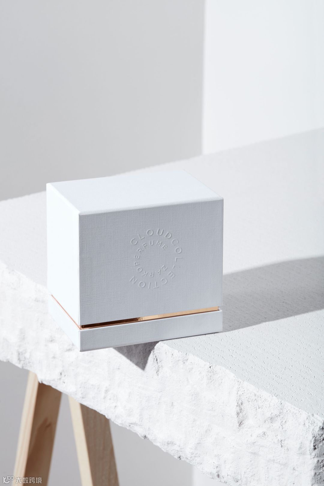 这是一款男女皆宜的香水,整个香水包装展现了一种中性的气质,风格为极简风。白色带格纹的纸配上细线条的字体,体现了十足精致感。内包装用香槟金色,增加了香水的高端感,外面微微露出内包装,为白色的外包装增加了设计感。