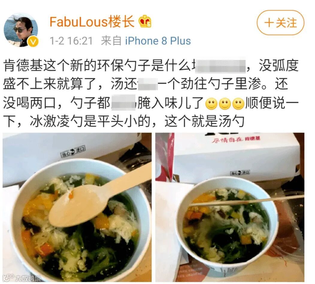 肯德基在限塑令正式施行后将汤勺换成了新的环保木勺,由于其弧度太小和没有镀膜,导致消费体验极差,引起人们对环保的怀疑。