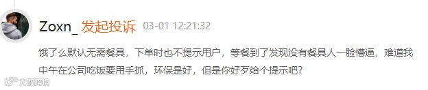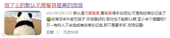 平台默认无需餐具打了用户们一个措手不及,并非不认同、不支持环保,不人性化的硬环保容易适得其反。