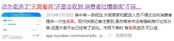 用户们往往容易将对平台的不满误转移到商家身上,对商家造成利益损失。环环相扣,商家们被投诉怕了,出现越来越多“无需餐具仍配送”,增加真正环保的用户物质和内心的负担。