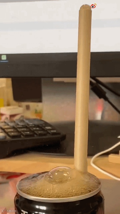 除此之外,纸吸管还喝不了可乐,如果硬喝,将会目睹一场爆发性的可乐喷泉。