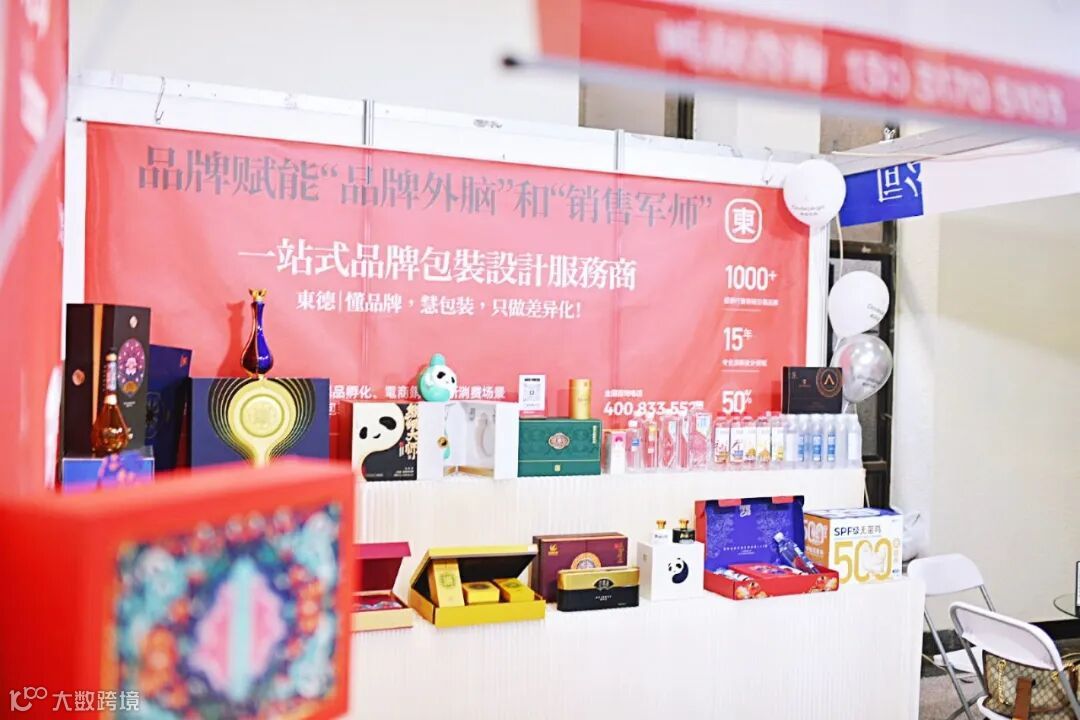 東德凭借专业的一站式品牌包装设计服务能力与极具差异化的包装设计成果于展会之上精彩呈现,红色的背景板上,“品牌赋能‘品牌外脑’和‘销售军师’”“一站式品牌包装设计服务商” 等字样醒目,彰显着東德在品牌包装领域的定位与使命。
