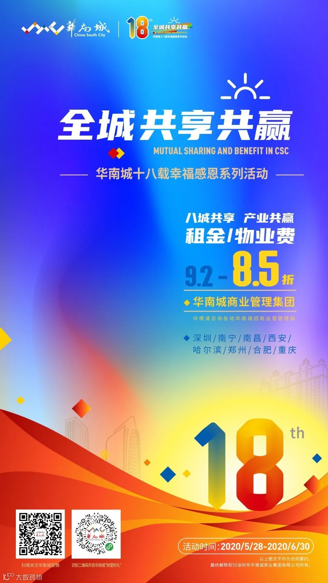 自5月底,华南城“全城共享共赢”活动盛大开幕,华南城携旗下商管集团、投开集团、乾龙物流、好百年、华盛奥莱,将与每一位合作伙伴及客户,分享品质、共享欢乐、拥抱精彩。