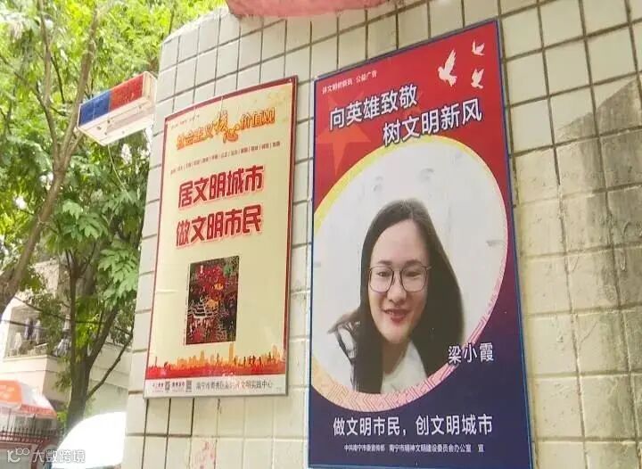 在南宁华南城在园区内,处处可见“学身边先进、做文明市民、创文明城市”的标语,以及印有广西第七批援湖北抗疫医疗队员、南宁市第六人民医院护士梁小霞画像的公益广告,在缅怀抗疫英雄的同时,激励着市民积极投身到创建全国文明城市的活动中。