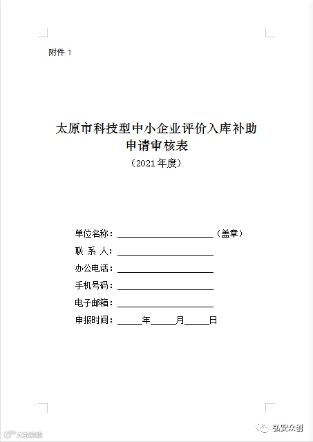 1.太原市科技型中小企业评价入库补助申请审核表(见附件1);