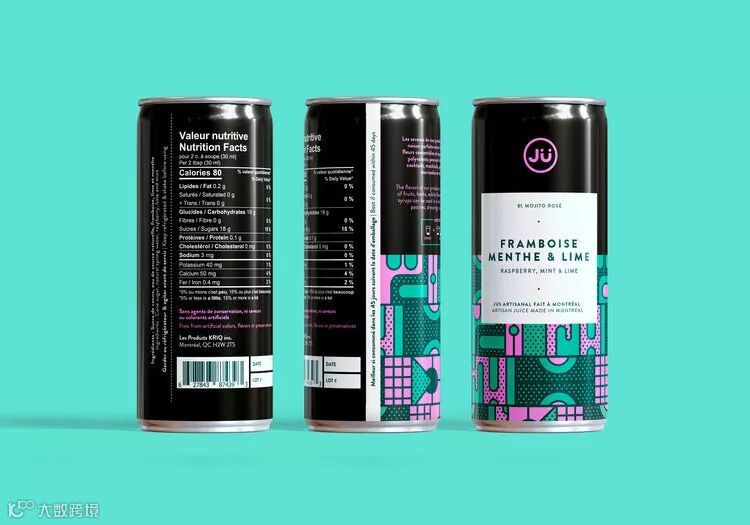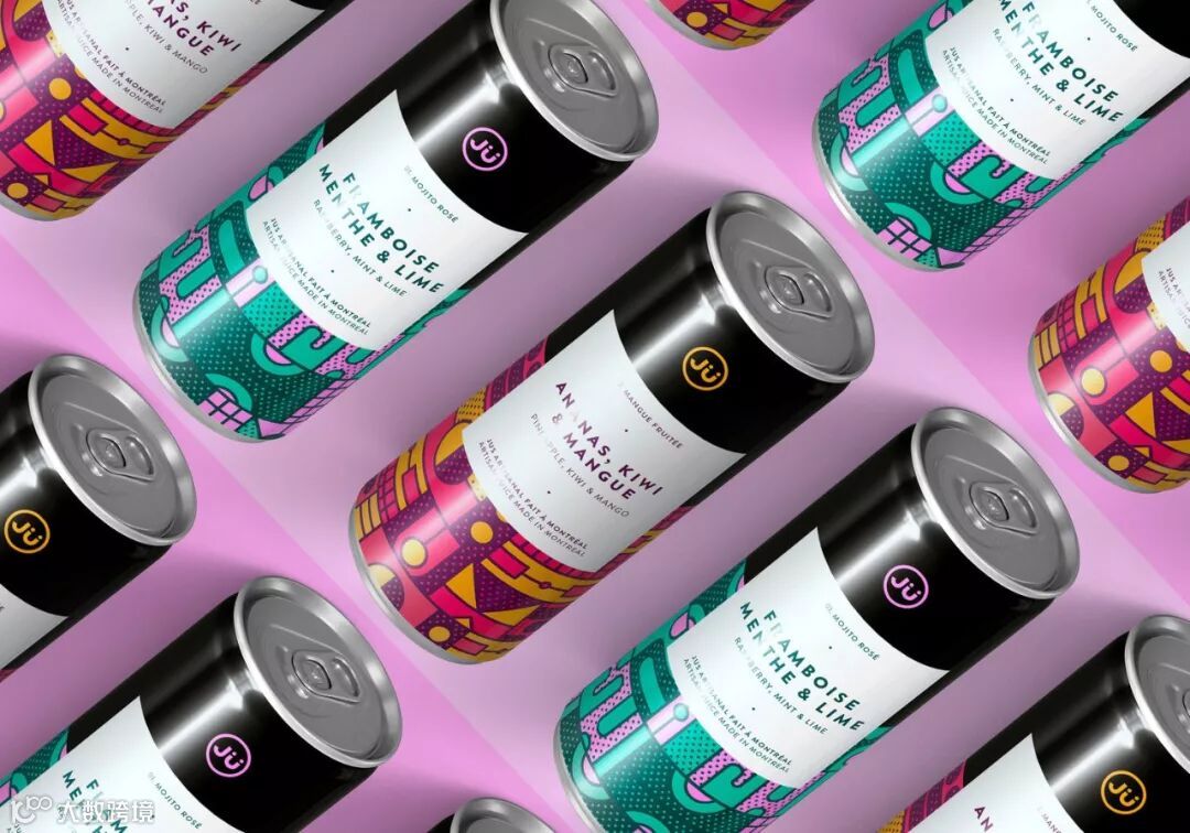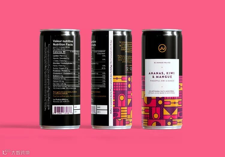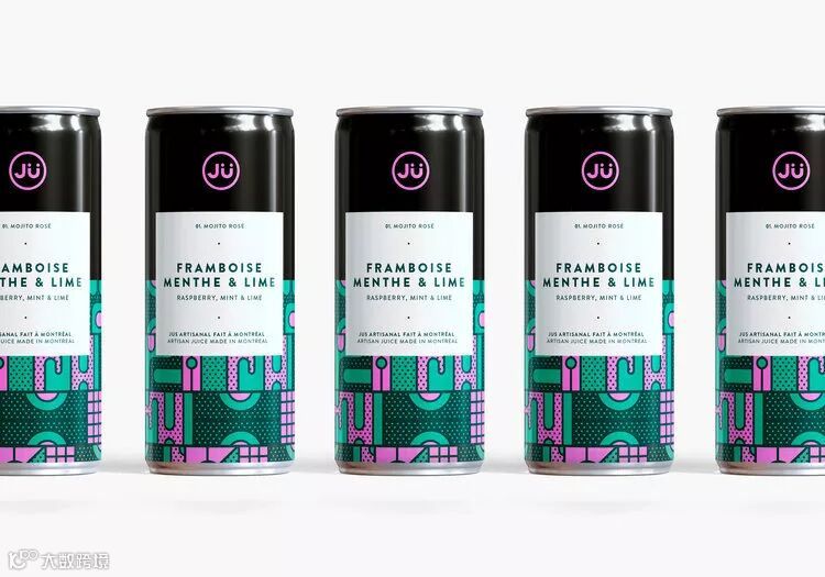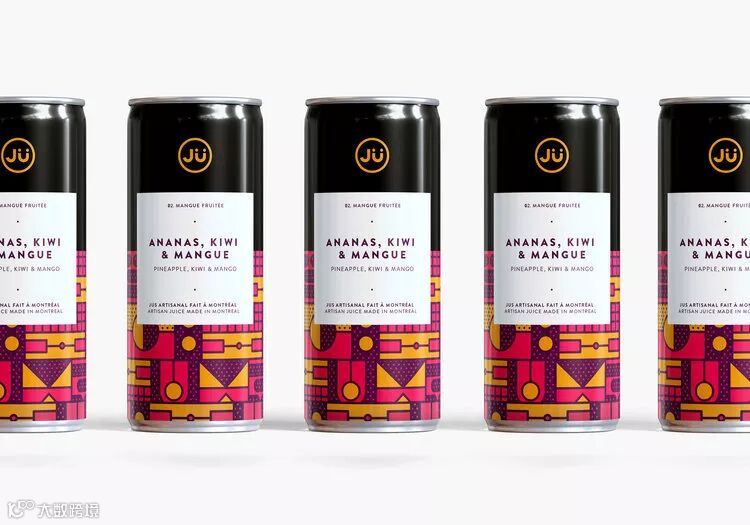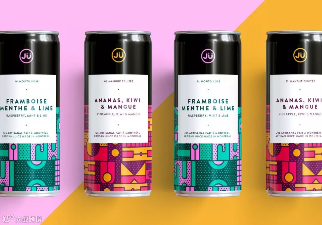 总部位于蒙特利尔的果汁公司JÜ推出了鲜艳对比色系列的几何图形设计的新罐。色彩的灵感来自饮料中的两种主要成分,而每种口味都专门定制了不同的图案。