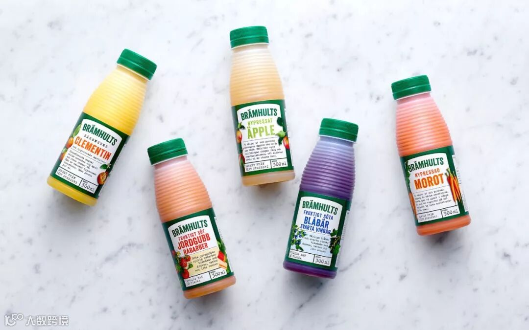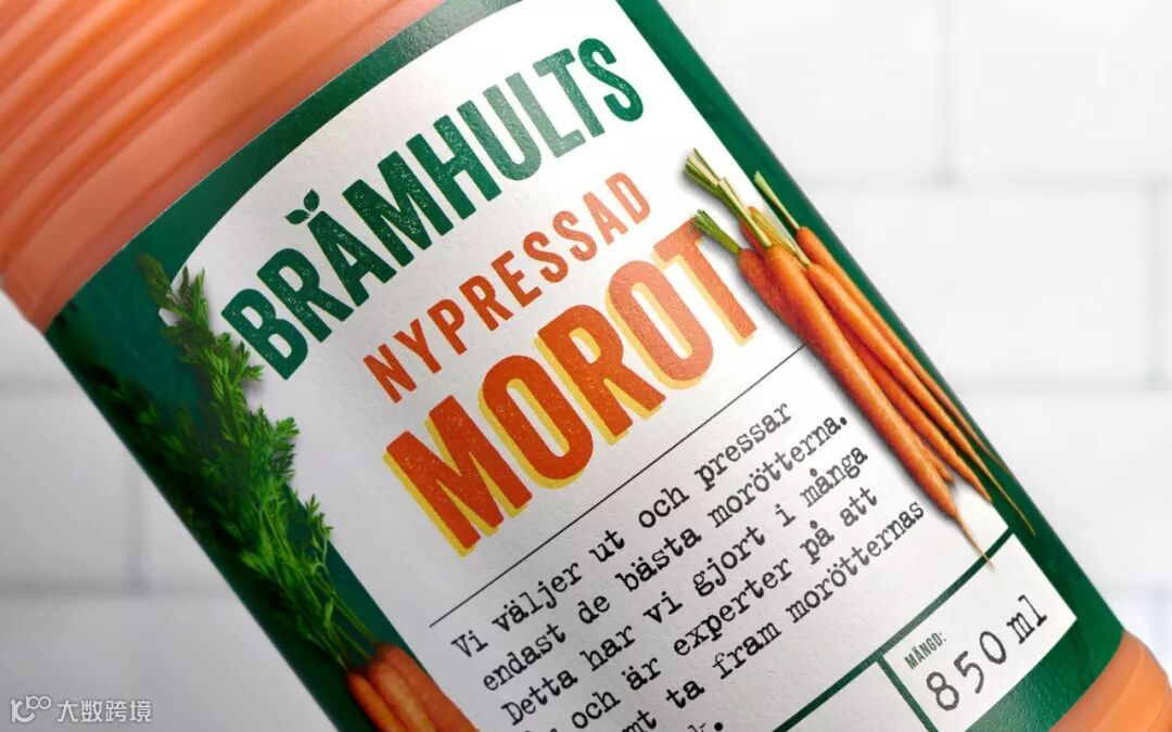 Brämhults是一个瑞典品牌,旨在为消费者提供新鲜果蔬汁。这款果蔬汁的设计理念来自于对大自然色彩的致敬。包装上使用现代感强的手工字体,体现了他们的品牌灵魂:工艺与现代性。Brämhults的'ä'上的树叶十分有特色,提高了品牌认知度。包装上的各种形式的水果蔬菜,体现了大自然的季节变化,具有真实性。
