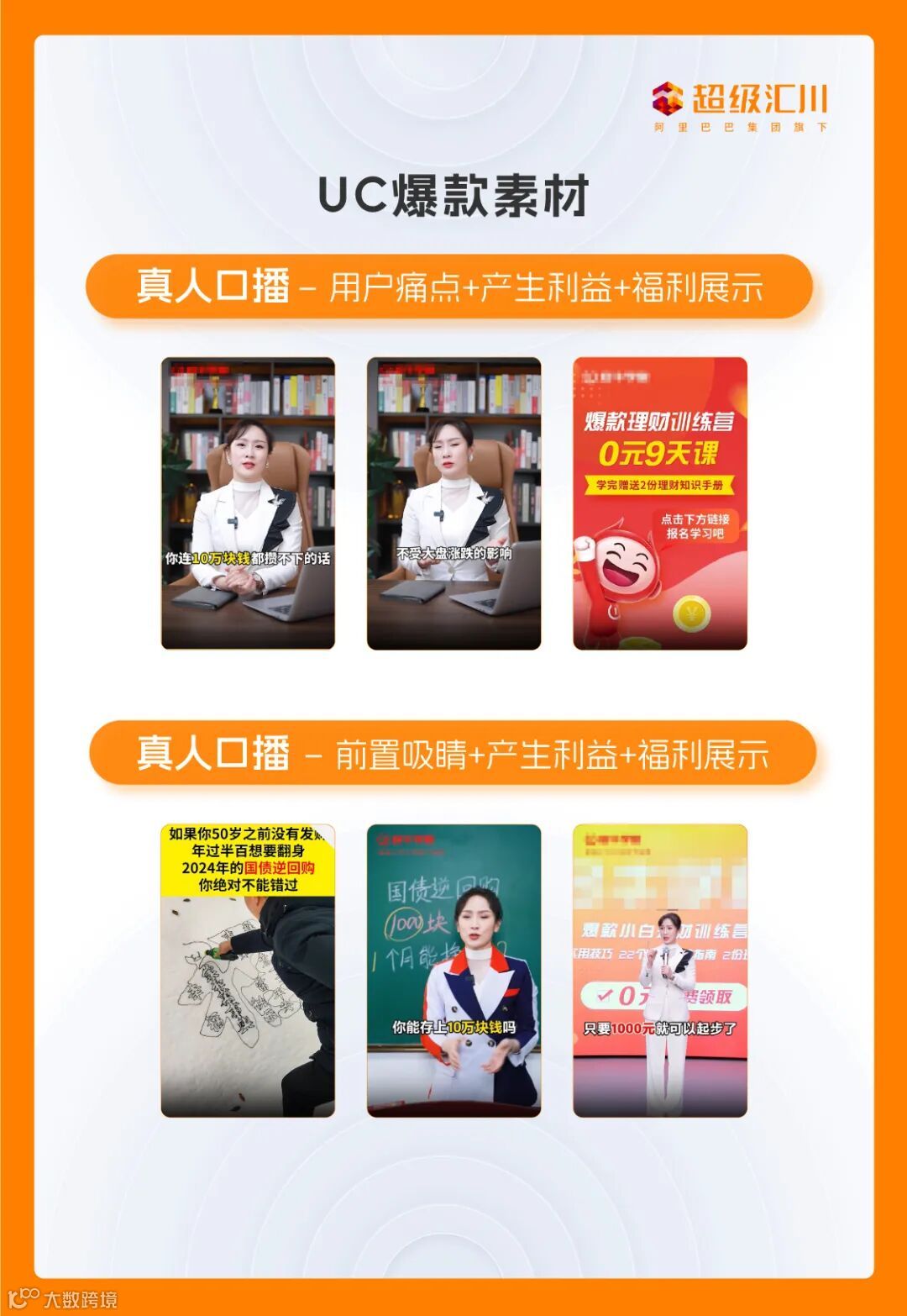 针对用户的需求和痛点,超级汇川广告爆款素材通过口播、教学等形式搭配组合,更进一步突出教育产品的优势,从而更好地引发用户的共鸣和需求,提高广告转化率。