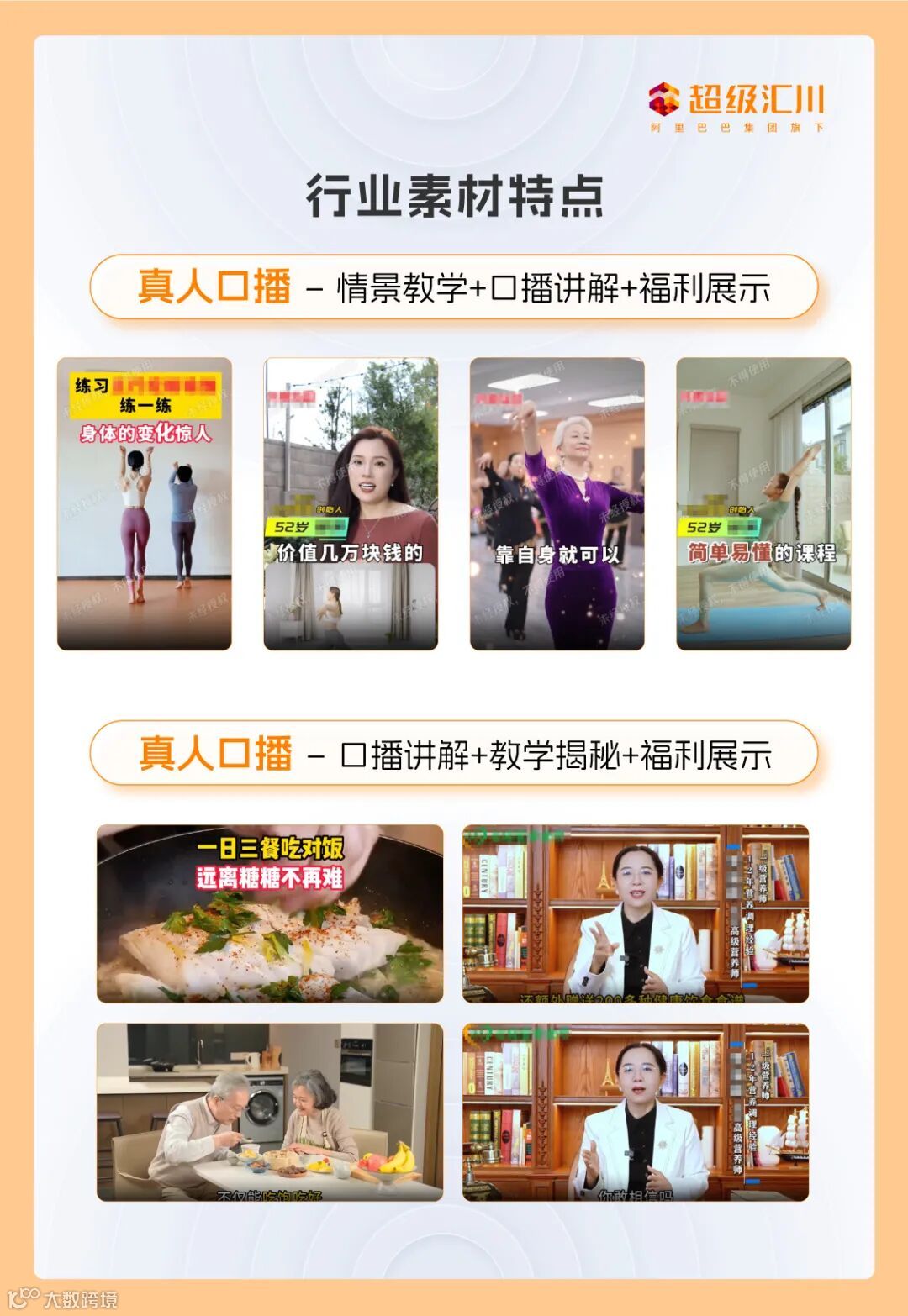 超级汇川爆款素材针对真人口播素材的调优策略以前置贴片+口播为主,展示产品优势,具体包含: