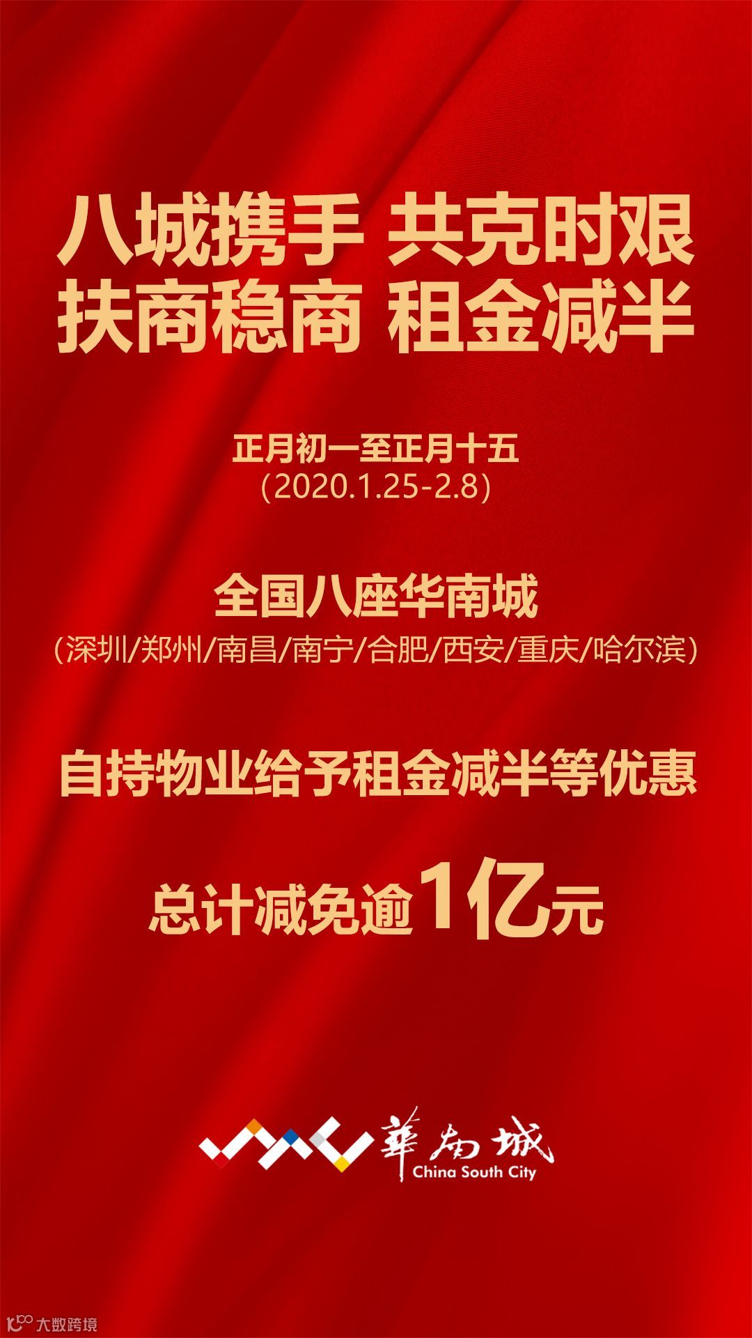 2020春节假期,一场突如其来的新型冠状肺炎疫情牵动着每一位中国人的心。生命重于泰山,疫情就是命令,华南城集团第一时间成立疫情防控领导小组,制定严格防控方案,全力投入防疫战斗。作为大型综合商贸物流企业,华南城尽管自身因疫情受到影响,仍积极响应国家号召,出台减免租金政策,总计减免商户租金逾亿元,共克时艰。同时,还投入3000多万元资金,采购防疫物资,协助园区商户消毒防疫,充分展现了华南城爱国敬业的企业精神。