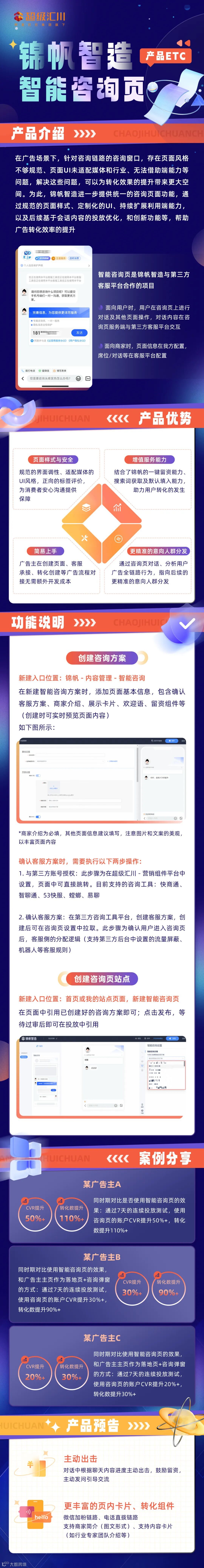 超级汇川锦帆智造自从升级以来,不断丰富建站功能及营销组件。在帮助广告主便捷生成投放落地页后,也在通过功能完善打造助力转化的产品闭环,近期智能咨询页功能全新上线。