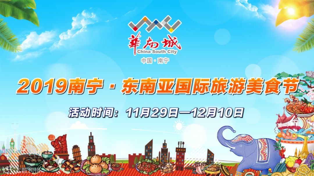 2019南宁·东南亚国际旅游美食节以“品天下美食 赏东盟风情”为主题,举办地点依然定在南宁华南城,时间定于2019年11月29日—12月10日共12天,每天9:00-21:00,届时华南城华南大道2-3号广场将成为美食荟萃的天堂,美食达人汇集的圣地。好吃、好玩、好看的都会备好,就等你来!
