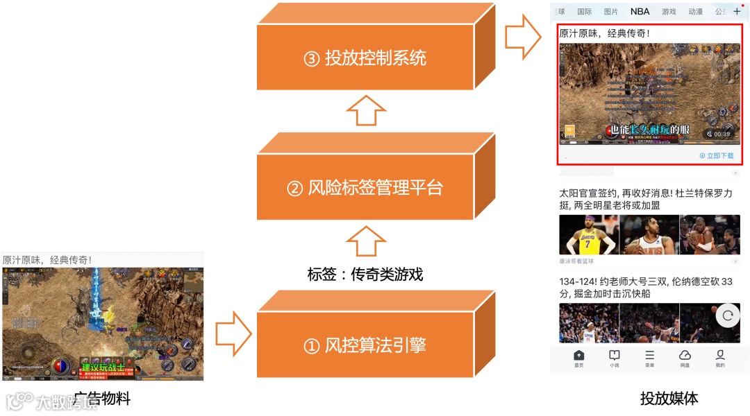 这就对我们平台的物料审核能力提出很大的挑战,不仅考察平台审核违法违规内容的“硬实力”,也考验平台在指导客户规范物料分类和合规投放上的“软实力”。因此,需要平台拥有对物料内容的深入理解能力。我们综合运用各类模型算法,建设物料的“风控标签系统”,使用标签系统对物料做统一管理,进而在投放侧,通过对标签的使用,实现广告物料的精准投放控制。