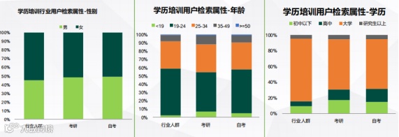 女性比例略高于男性,考研及自考类人群年龄段相近