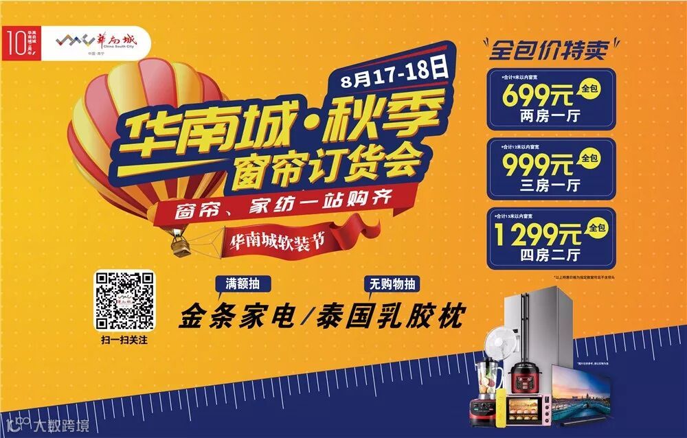 8月17-18日,华南城软装节暨秋季窗帘订货会,在3号广场举行,本次订货会是华南城窗帘批发市场第三届订货会,为丰富本届订购会的内容,除窗帘业态参加活动之外,还增加了家纺业态。本次活动的举办对华南城商业日后稳健发展,为提升商户信心、建立业态口碑意义重大、影响深远。