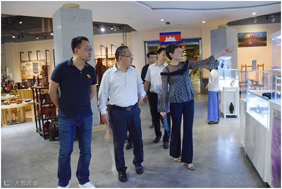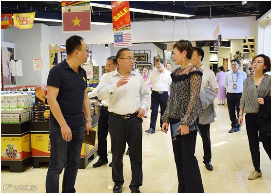随后,考察团一行在李颖总的陪同下来到东盟国家产品体验馆,饶有兴趣的参观了馆内充满东南亚风情的特色装修及商品,并了解了东盟馆的发展及未来规划。
