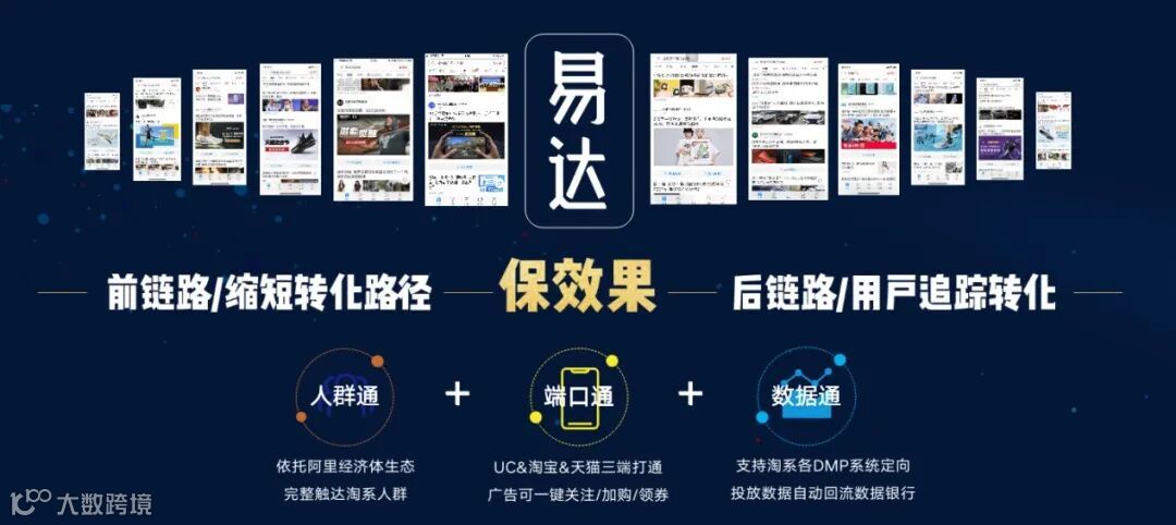 与阿里电商能力全面打通的独家明星产品,实现了人群通,端口通,数据通,具备完整的阿里电商体系营销能力。在营销前链路,易达以一键加购大幅缩短营销路径,在后链路,对用户进行持续追踪,将未能即时转化的用户沉淀为私域品牌资产,以实现长期追踪转化。