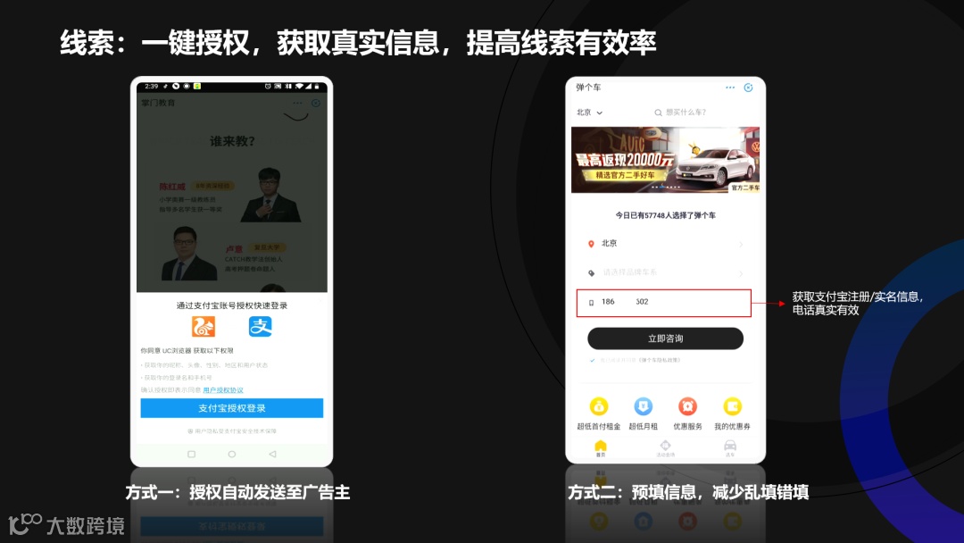 (一)线索:一键授权,获取真实信息,提高线索有效率
