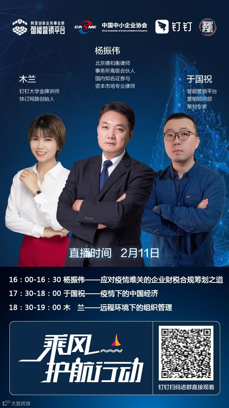 创新业务事业群智能营销平台联合中国中小企业协会、钉钉,发起中小企业护航公益行动——乘风护航行动,通过营销与远程管理方面的知识普及与助力,帮助中小企业优化企业结构和运营模式,顺利度过特殊时期,首次课程将于2月11日正式开播。