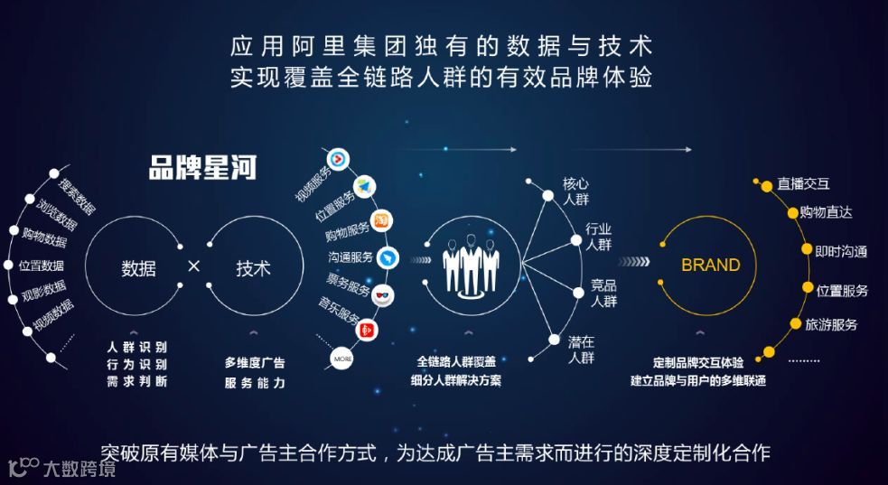 这一理论的提出,与阿里文娱智能营销平台当下正在进行的尝试不谋而合。2018年,阿里文娱智能营销平台通过整合阿里多端服务平台推出的创新定制化的商业化产品体系——“品牌星河”。应用阿里集团独有的数据和服务能力,突破原有媒体与广告主合作方式,以达成广告主需求为目的,而进行了深度定制化合作体验的服务产品。