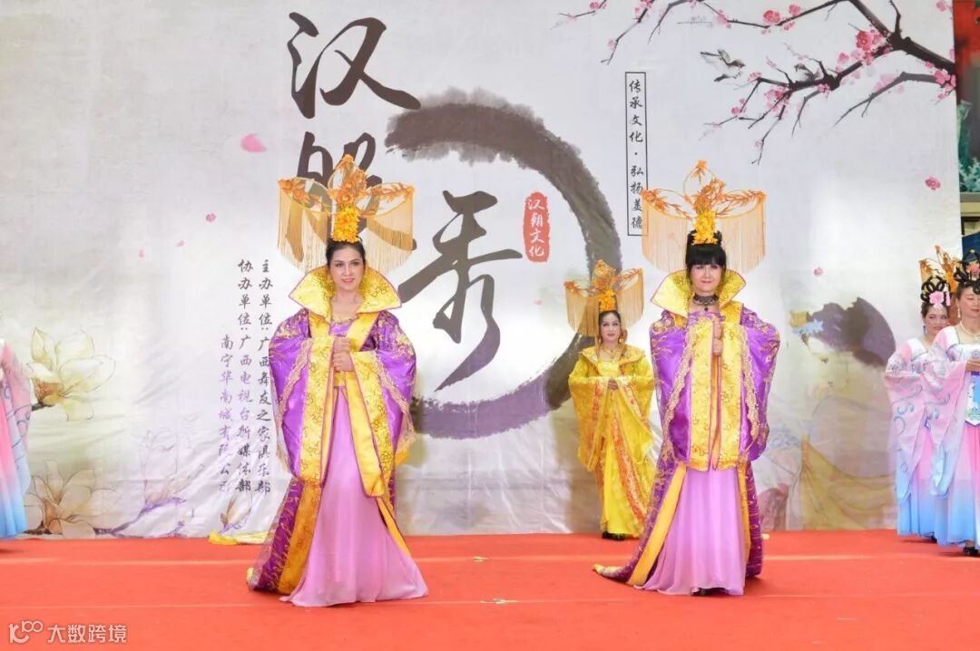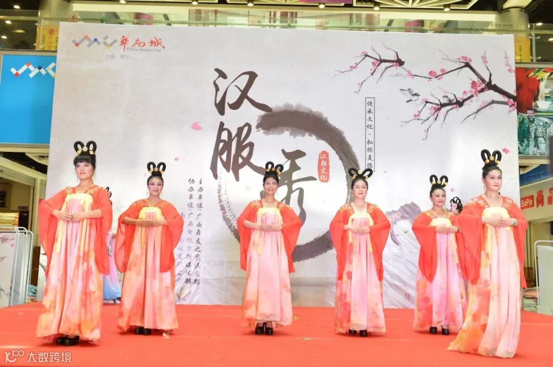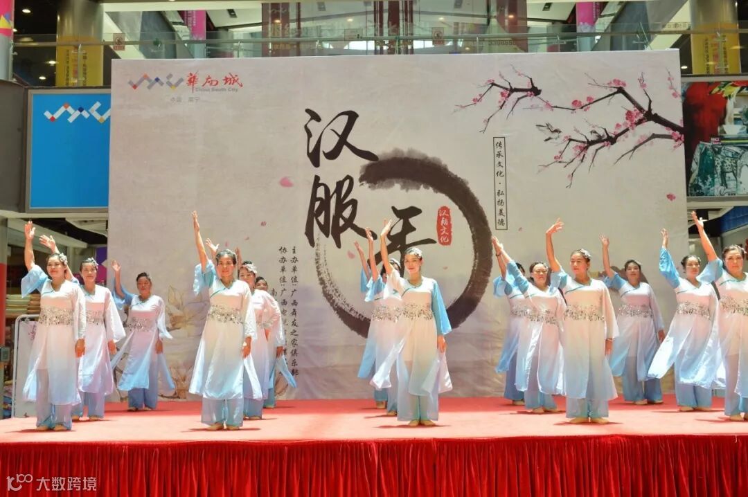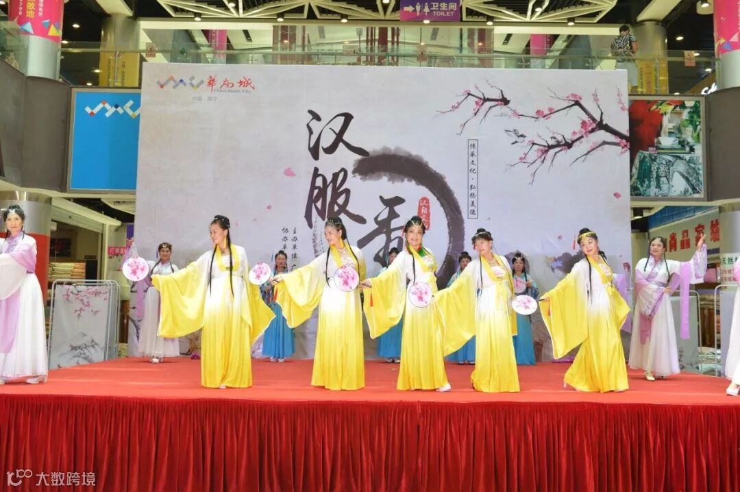 看着各位阿姨穿着汉服走秀的样子