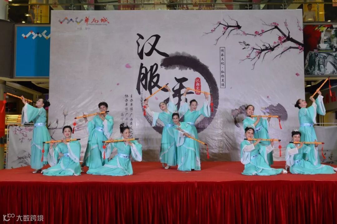 身着汉服秀整齐列队