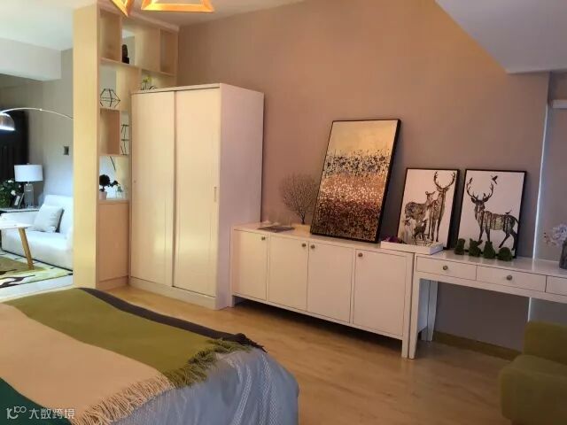 公寓的装修设计将客厅与卧室相统一,隔断了厨房餐厅,以纯净舒适的简约风格搭配小户型空间,扩容设计显示精致格调,入住时仅需购置个性的家具便可享受自由生活。