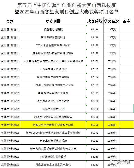 附件:第五届“中国创翼”创业创新大赛山西选拔赛暨2022年山西省星火项目创业大赛获奖项目名单