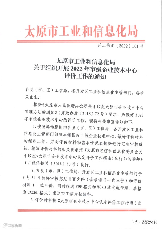 根据太原市工业和信息化局《关于组织开展2022年市级企业技术中心评价工作的通知》(并工信函〔2022〕101号)要求,山西综改示范区现开展2022年市级企业技术中心评价工作。