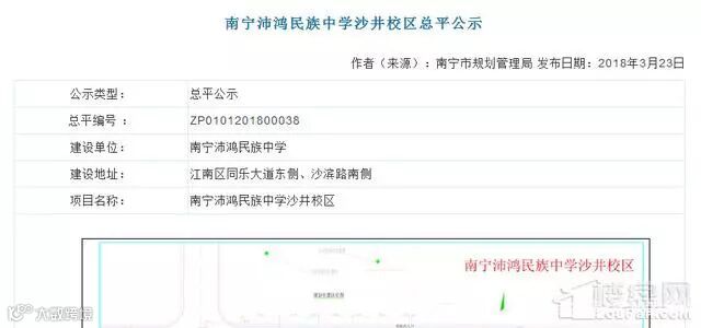 南宁市规划管理局于曾经于2018年3月23日在官网发布公示,将在江南沙井片区规划一所中学——沛鸿民族中学沙井校区。