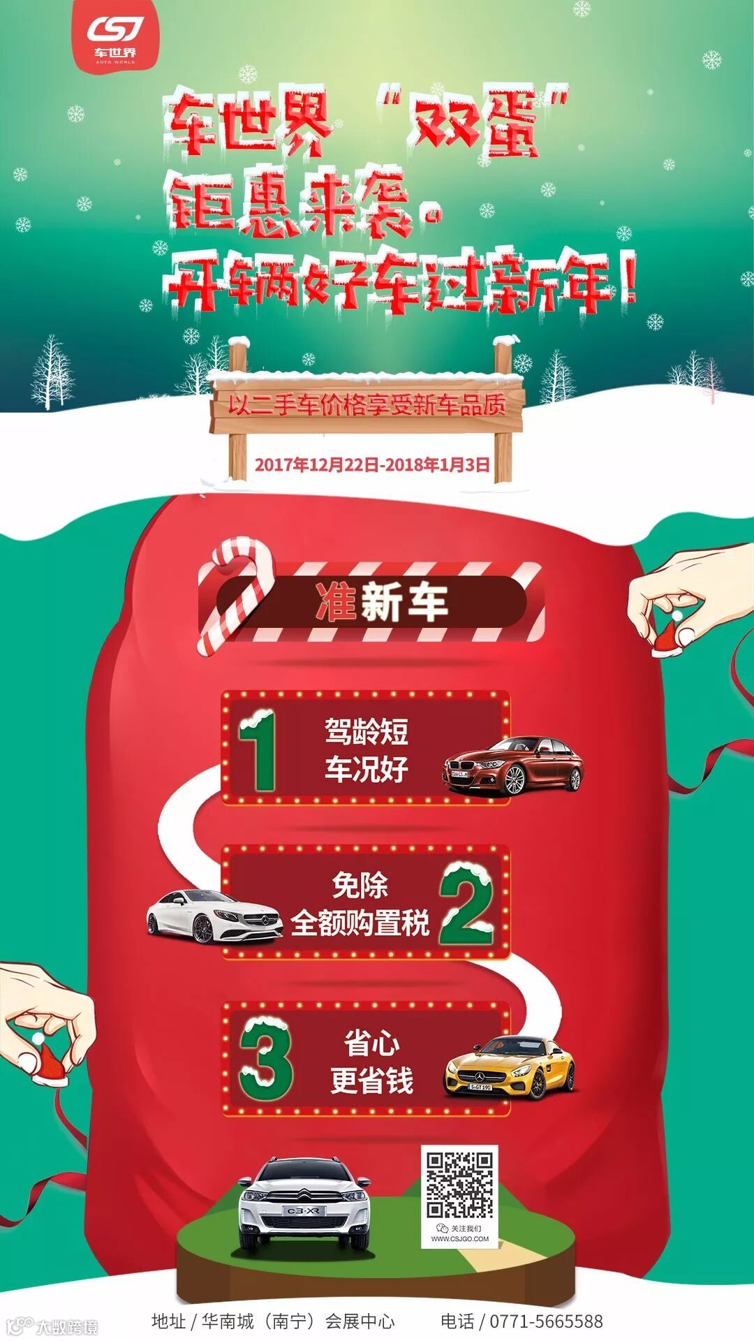2017广西惠购车展,展会为期3天,本届室内大型车展汇集合资、进口、国产自主60余个热销品牌400余个主流车型。本届展会不仅能享受厂家年底岁末大促、还可赶上车购税政策到期日前最后一波补贴,此外车展组委会提供了惊喜购车大礼包。来访市民可尽享岁末车展优惠盛典!